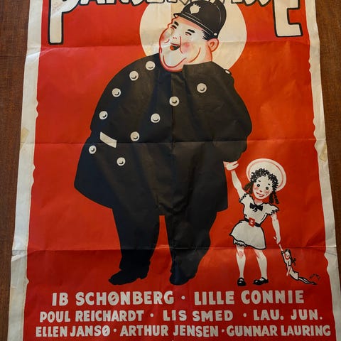 Baronessen fra benzintanken plakat med farverigt motiv fra filmen. Plakaten viser illustrationer af centrale figurer og miljø fra filmen samt titel og medvirkende. Velegnet som vægdekoration for samlere af danske filmplakater eller til indretning med filmtema.str på plakat 62/83