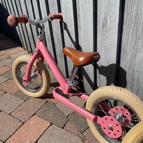 2 hjulet cykel med støttehjul, som kan tages af. Der er gurli gris Motiv på cyklen.
