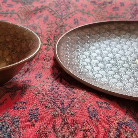 Japanske tallerkener i mærket Kanesuzu. Tallerknerne er 28 cm i diameter. Hjembragt fra Japan i marts 2026 og har ikke været brugt. Sælges da de er kommet i overskud.