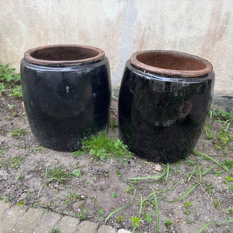 Keramik krukker, en enkelt har været i brug, resten er ubrugte, pr stk