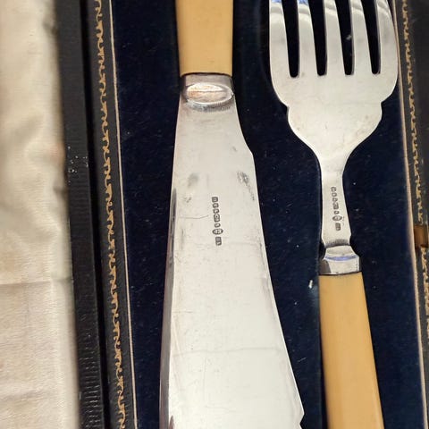 12 stk Raadvad knive spise- eller bordknive med lyse håndtag