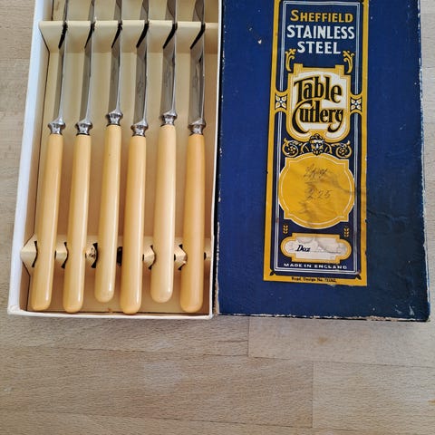 6 stk. Sheffield England bestikknive med lyse håndtag
