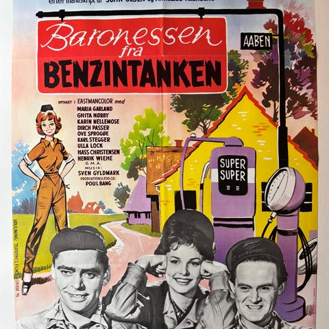 Færgekroen dansk filmplakat i farver med motiver fra filmen og portrætter af skuespillere. Original plakat velegnet til indramning og dekoration, særligt for samlere af danske filmplakater og retro plakater.