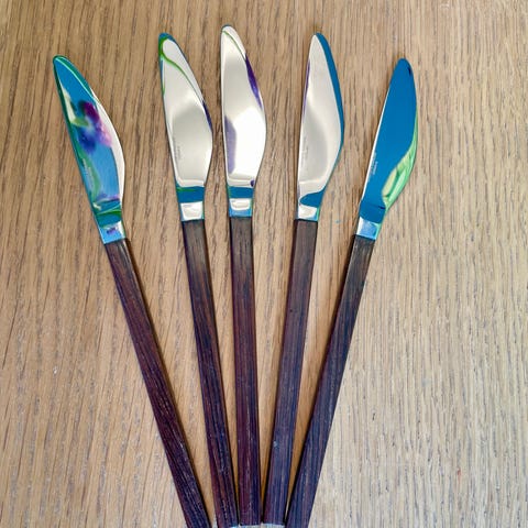 Geilo Knivfabrik Norge. 6 stk bordknive rustfri stål med lyse håndtag