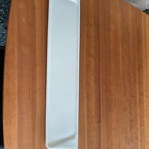 Keramag porcelænshylde i hvid. På undersiden ses støbnumre og Keramag-mærkning.