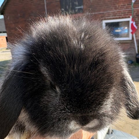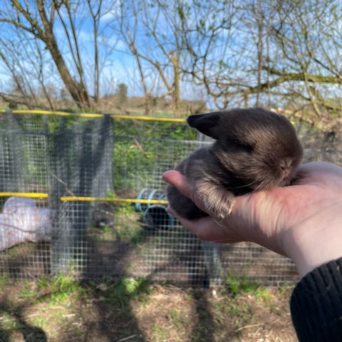 Vi bruger rigtig meget tid på vores kaniner hver dag og nusser med dem og har dem i løbegårde.