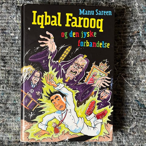 Manu Sareen Iqbal Farooq og den indiske superchip bog. Illustreret børne- og ungdomsbog på dansk med farverig forside. Udgivet af forlaget Carlsen. Velegnet til højtlæsning eller selvlæsning for børn i skolealderen.