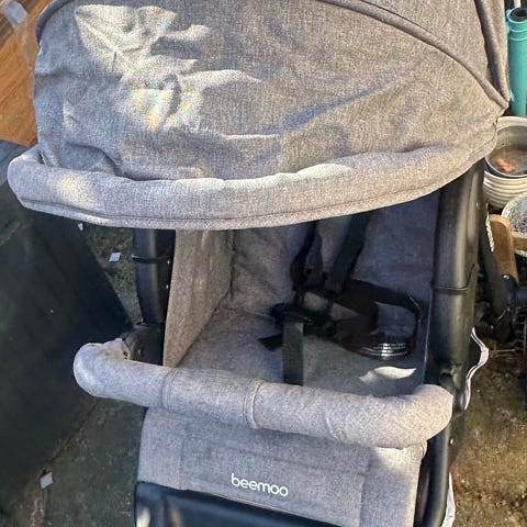 Beemoo Joggingvogn Sport City klapvogn i sort. Modellen har tre hjul med luftdæk, justerbar kaleche og fempunktssele. Foran er der aftagelig frontbøjle, og under sædet er der opbevaringskurv. Ved styret er der bakke med to kopholdere og lille opbevaringsrum. Klapvognen er egnet til ét barn op til 15 kg, jf. brugermanualen. Velegnet som joggingvogn eller til hverdagsbrug på forskellige underlag. Beemo Sport Kombo Løbevogn. Superfin klapvogn, som vi har været rigtig glade for. Er kun brugt som klapvogn, ingen løb 😅 Har stået i en tør og varm kælder et par år. Den er i fin stand, men skal have luft i alle tre dæk.