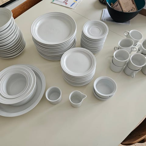 Ti sæt kaffekopper, underkopper og sidetallerkener - pris 40 kr/sæt - køb alle 10 sæt for 350 kroner
