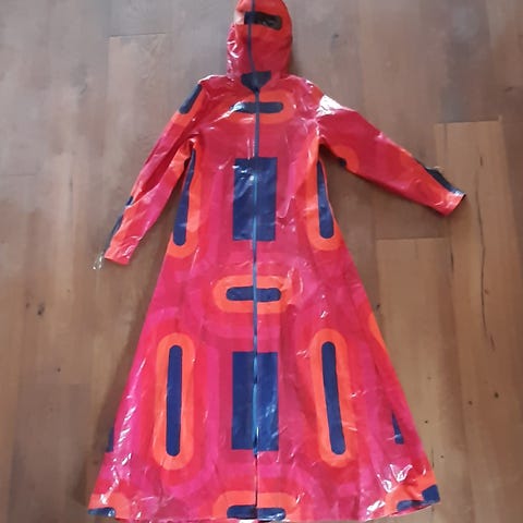 Danefæ regnjakke til kvinder i størrelse XL. Jakken er multifarvet med dominerende grønne og sorte nuancer samt mønster over hele overfladen. Modellen har hætte med snøre og gennemgående lynlås foran. Velegnet som yderlag i vådt vejr. Materiale er angivet som akryl. VED IKKE HVILKEN MATERIALER DEN ER LAVET I, MEN ER REGNTÆT.