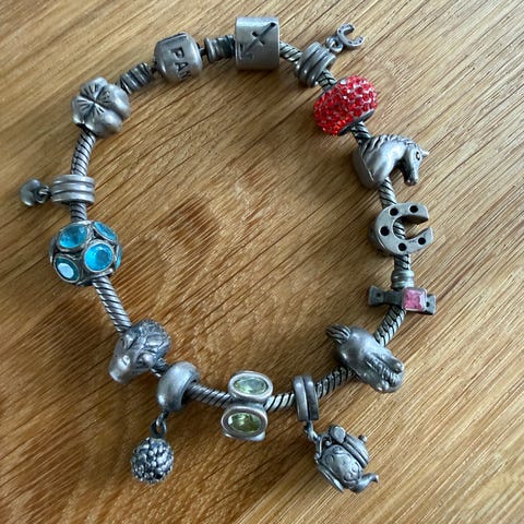 Pandora armbånd med tre led / charms + et perleled.
