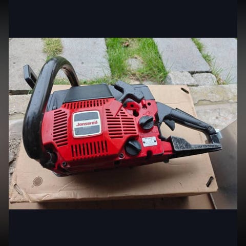 Et rigtig fint eksemplar af en gammel stor Jonsered motorsav.