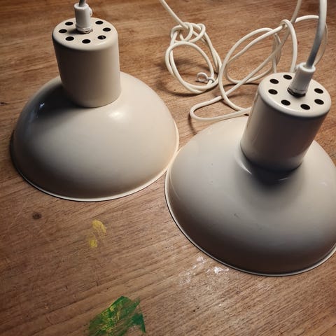 Hvid pendel model MEDIO. Designet af Jo Hammerborg for Fog & Mørup. Lampen har en diameter på ca 32 cm og den er ca 17 cm høj. Den har små skønhedsfejl. Se billeder. Fra 1970' gerne.