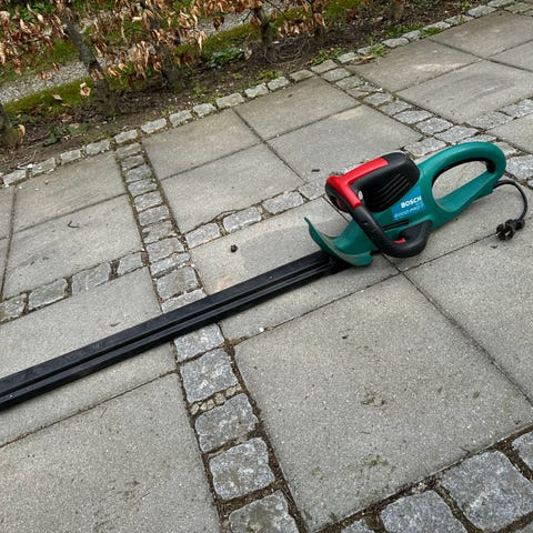 Bosch AHS 6000 Pro-T hækkeklipper. Elektrisk hækkeklipper med 60 cm sværdlængde egnet til klipning og trimning af hække og buske i haven. Ergonomisk håndtag med softgrip og beskyttelsesskede til klingen. Velegnet til almindeligt havearbejde, formklipning og vedligeholdelse af mellemstore til større hække. Den fungerer perfekt og skærer let igennem 24mm grene, sælges kun da en med batteri er købt.