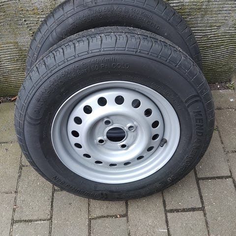 Trailer dæk sælges, har både nogle enkelt stk. og et par sæt. Se billeder. Har også 2 stk. Trailerfælge 4x100 de kan sættes på.