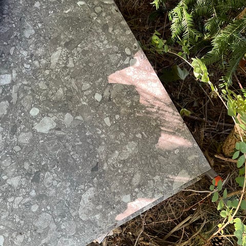 Kvadratiske grå keramiske fliser. Overfladen fremstår let meleret/plettet i en lys grå nuance, bagsiden har rillet mønster til fastgørelse i fliseklæb. Egnet til lægning på gulv eller væg i fx bryggers, kælder, garage eller andre indendørs/overdækkede områder, hvor der ønskes en neutral og lys grå flade. Antal er ca. 450 og bør kontrolleres ved afhentning.