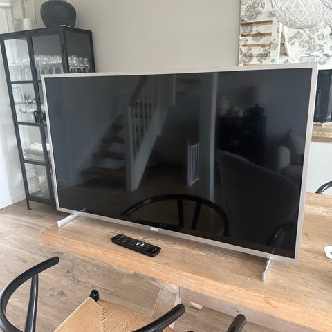 Philips fladskærms-tv med sort kabinet. Tv’et har tilslutningsmuligheder på bagsiden, herunder blandt andet scart-stik og analoge lydindgange. Egnet som almindeligt tv eller som skærm til f.eks. dvd-afspiller eller spillekonsol, afhængigt af de tilgængelige indgange. Størrelse, opløsning og modelnavn fremgår ikke tydeligt af billederne og bør kontrolleres på selve apparatet.
