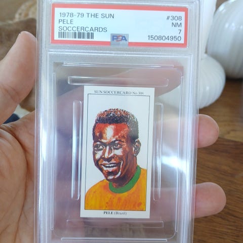 Panini Mexico 86 fodboldkort med Allan Simonsen, kort nr. 358. Kortet er indkapslet og graderet af PSA med karakteren 9 (Mint). Den højeste grade af kortet hos PSA. Bagsiden viser Mexico 86-logo, kortnummer samt tekst på flere sprog. Egnet til samlere af Panini Mexico 86-serien og fodboldrelaterede samlekort. Gratis Fragt