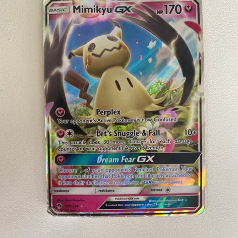 Pokémon Sylveon GX samlekort. Holografisk GX-kort med 200 HP fra Pokémon Trading Card Game. Kortet viser Sylveon GX med angreb og evner angivet på forsiden. Bagsiden er standard Pokémon TCG design. Egnet til samling eller brug i Pokémon-kampe.