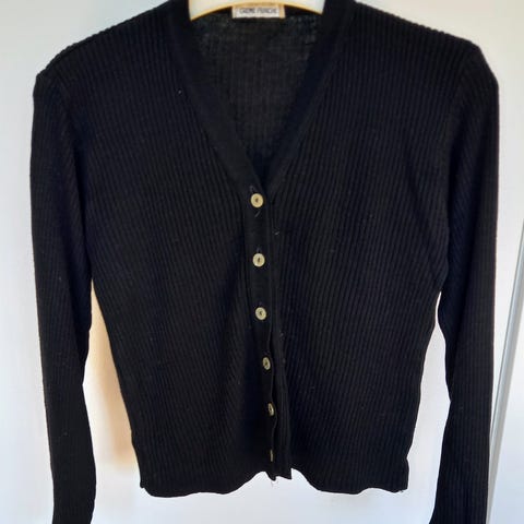 Andet, Cardigan, Est-elle?, str. S, Sort og hvid, God men brugt, Jeg sælger denne cardigan til 10 kr. Der er farvede palietter på.