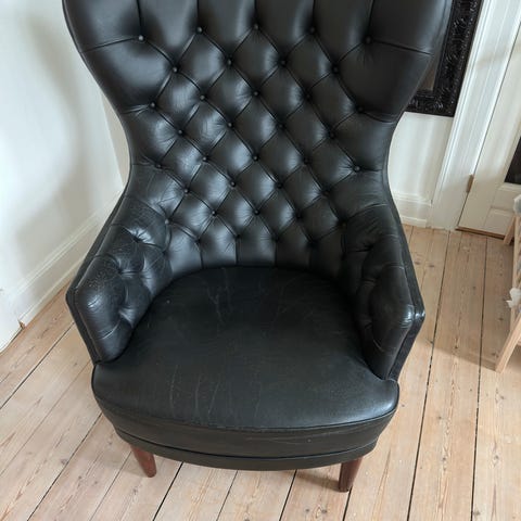 Ilva lænestol i sort fløjl. Lænestolen har dyb knaplukning i ryglænet og brede, afrundede armlæn. Polstret sæde og ryglæn giver en blød siddekomfort. Egnet som enkeltstående lænestol i stue, læsehjørne eller som del af en sofagruppe. Designet er inspireret af klassiske chesterfield-detaljer. Designet af Achille Castiglioni. 2 stykker samlet pris 1000kr