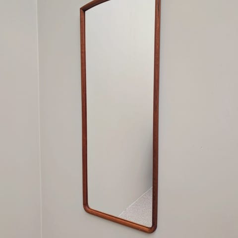 Spejl massiv teak med kobberindlæg fuldfigur.
