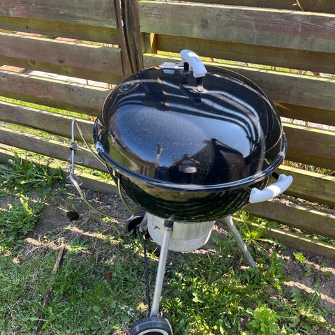 Weber kuglegrill kulgrill i sort. 57 cm dia. Klassisk rund kugleformet grill med låg og indbygget termometer. Grillen har grillrist i metal og kulrist nederst. Udstyret med hjul for nem flytning og askebeholder under bunden. Velegnet til udendørs madlavning med kul eller briketter i have, terrasse eller altanområde, hvor der er plads til en fritstående kulgrill.