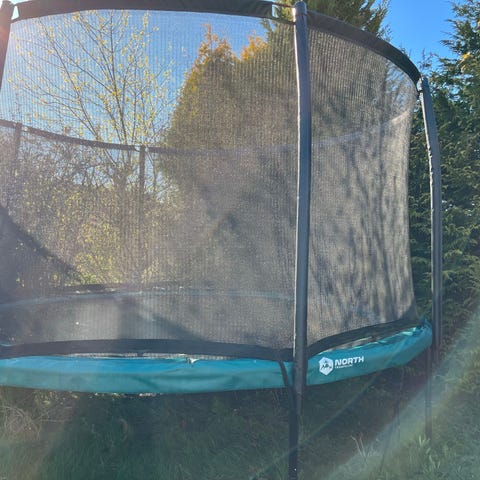 ER SOLGT - Købt i 2021. Virkelig god stand. Stige, sikkerhedsnet og stormkroge medfølger. Polstring på stolper. Ingen defekt eller huller. Står samlet, men tages ned i løbet af de kommende uger. Ny pris ca. 6.000 kr.