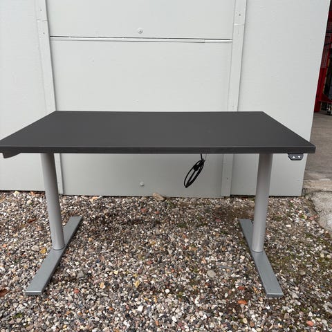 Hæve sænkebord skrivebord med elektrisk højderegulering. Bordet har lys bøgefarvet bordplade og sort metalstel med T-fod. Under bordpladen er der kabelbakke til organisering af ledninger. Betjeningspanelet har knapper til justering af højde samt hukommelsesfunktion til gemte positioner. Velegnet som arbejdsbord på kontor eller hjemmearbejdsplads. Stykpris