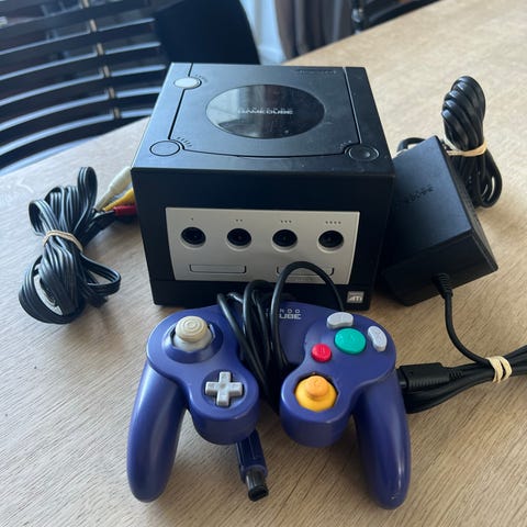 Original lilla Nintendo Gamecube inkl strømforsyning og videokabel (AV-kabel)