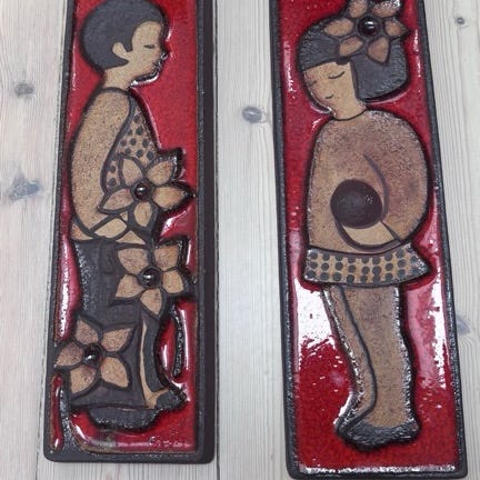 Flot og fejlfrit Søholm keramik relief motiv dreng i flot rød/ brun glasur