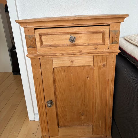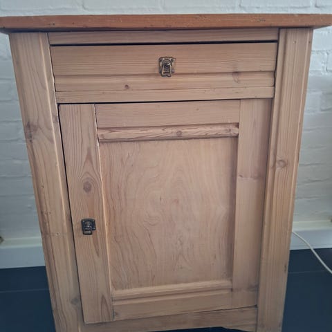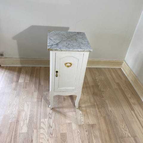 Senge eller lampebord i afsyret fyrretræ med marmor plade. Mål ca 38 x 42 cm. Ca 82 cm i højde. Skal afhentes i Middelfart midtby. (Jeg kan desværre ikke ændre i mærket, der naturligvis ikke passer)
