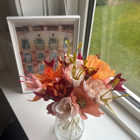 Smukke papirsblomster / handmade paper flowers Fra Almeja Space
