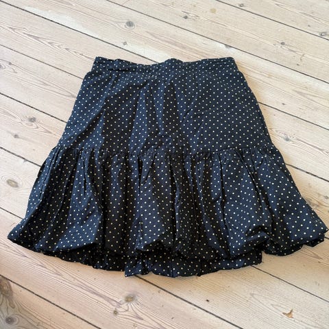 Co'couture nederdel i størrelse L til dame. Nederdelen er sort og fremstillet i polyester. Modellen har bæltestropper i linningen, læg foran og sidelukning med lynlås. Velegnet til hverdagsbrug eller mere formelle anledninger afhængigt af styling.