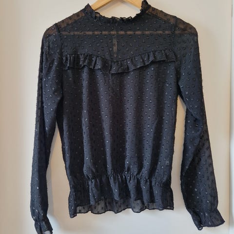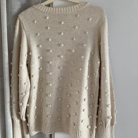 Jeg sælger denne fine striktrøje med flæser foran, fra Neo Noir