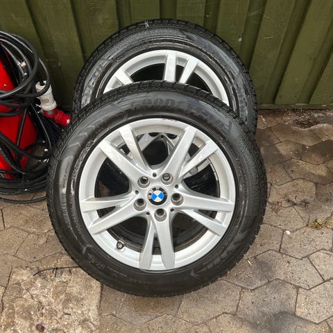 Følge med vinterdæk . 2 stk hankook og 2 stk Bridgestone str 225 55 17 . Der er godt med mønster tilbage på dækkene. Kom med et bud