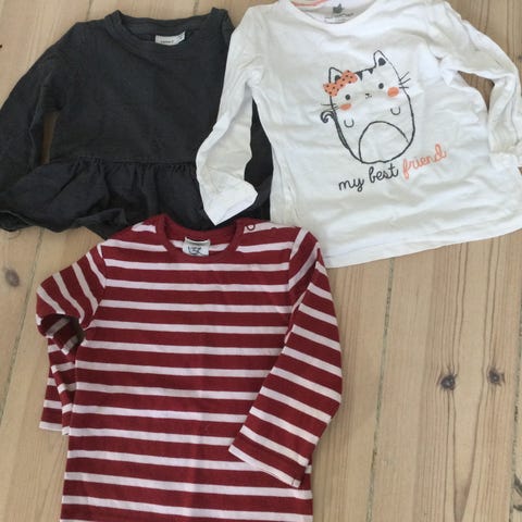 1 par bukser, 1 kjole samt 2 t-shirts i str. 86 sælges for 35 kr.