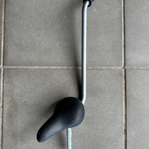 Monteres nemt med bolt og beslag, som ses på billederne. Fejlkøb, kun brugt få gange da min datter lærte at cykle uden kort efter vi købte den. Kvittering medfølger. Købt for 249,-