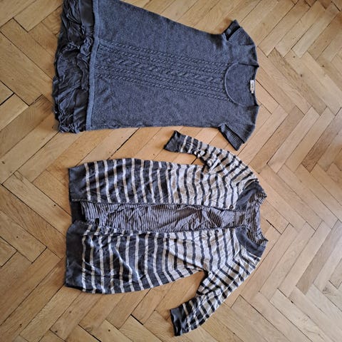 Der er en lilla bluse med strik-ærmer og kant i en lysere lilla farve fra St. Martins, str. M. Samt en højhalset og langærmet T-shirt i striber af grøn, lyserød og pink fra mbyM, str. M. Sælges samlet for 50 kr. og hver for sig for 40 kr. pr. styk. Der gives mængderabat ved køb af mere tøj - bare spørg