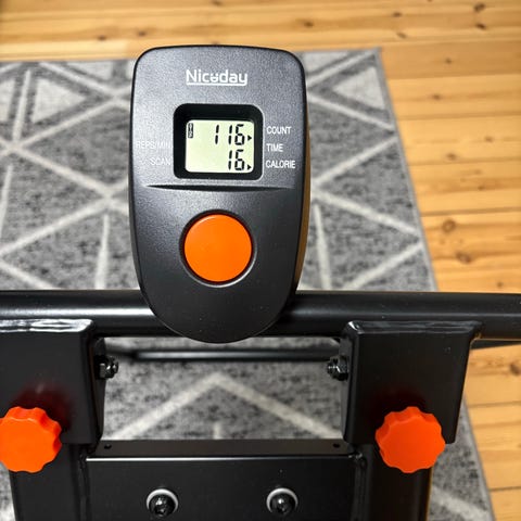 Odin mekanisk gåbånd med indbygget træningscomputer i sort. Gåbånd er har håndtag foran og i siderne samt display, der viser tid, distance, hastighed. Båndet kan klappes op i lodret position for pladsbesparende opbevaring. Velegnet til gang. Sort design med enkel betjeningsknap under displayet. Båndet kræver ikke strøm da det fungerer ved din egen vægt, perfekt til hjemmearbejdspladsen.