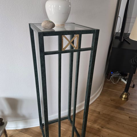 Jeg sælger lækker messingbelagt metal piedestal fra 70'erne eller 80'erne i Hollywood Regency stil - med 2 røgfarvede