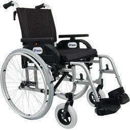 En sølvfarvet ramme i aluminium hjælper til at holde vægten væsentligt lavere end ved de fleste andre kørestole. Det er en fordel uanset om den skubbes af en ledsager, eller om du selv kører den med armene. Alle øvrige dele - sæde, ryglæn, armlæn og skubbehåndtag - har en elegant, sort farve.