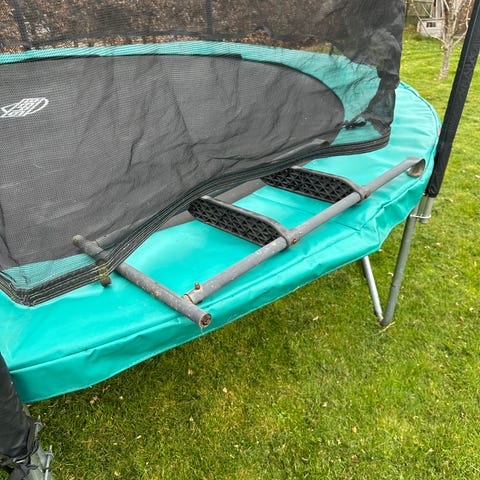Berg Champion trampolin 430cm. Købt i 2020, brugt meget sparsomt hver sommer siden og pakket ned/ stået inde hver vinter. Velholdt, trænger dog til lidt rengøring. Der er desuden lidt rust hist og pist på metalringe på selve dugen og lidt ridser på benene. Afhentes Silkeborg, ikke samlet pt. nb. net medfølger ikke og det er ikke en in-ground trampolin.