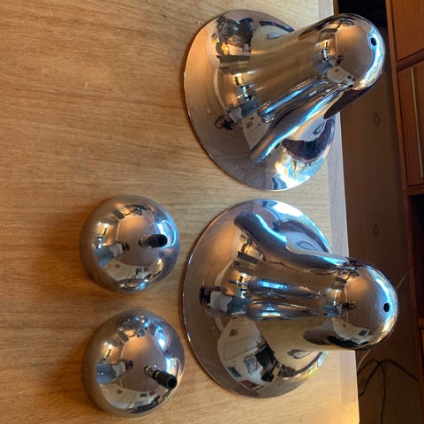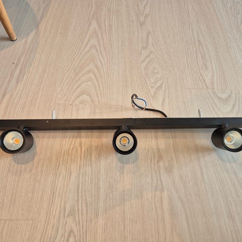 10stk blanke spots med 2 stk. skinner , længe 200 m , pr. Skinne,samt adapter, ledninger.