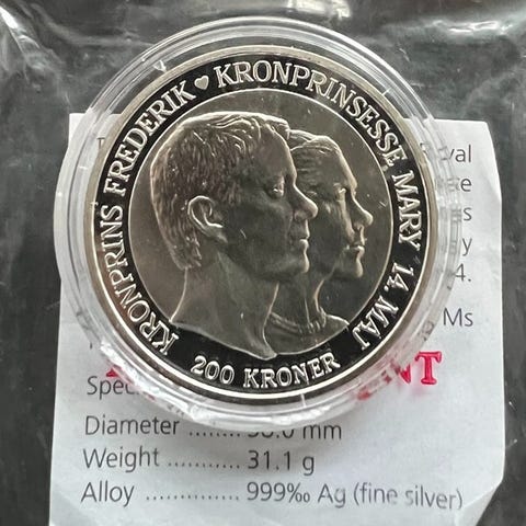 200 kr. Bryllupsmønt i Sølv (2004) – Frederik & Mary
