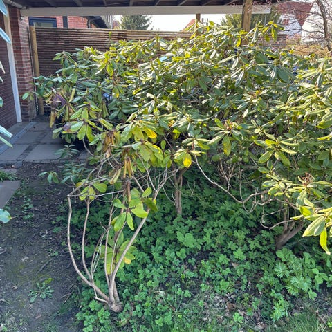 Rhododendron buske og rosenbuske står klar til at du graver dem op,- og så kan du få dem alle for 500,- kr