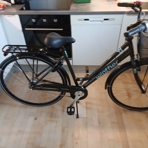 Winther cykel fra 2022, kun ganske lidt brugt. 7 indvendige gear. Rød. Cykelkurv. 50 cm - usikker på hjulstørrelse.
