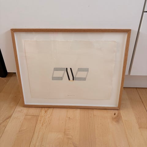 Har fået et hak i den hvide kant (kan skjules i evt passe partout) derfor den lave pris.