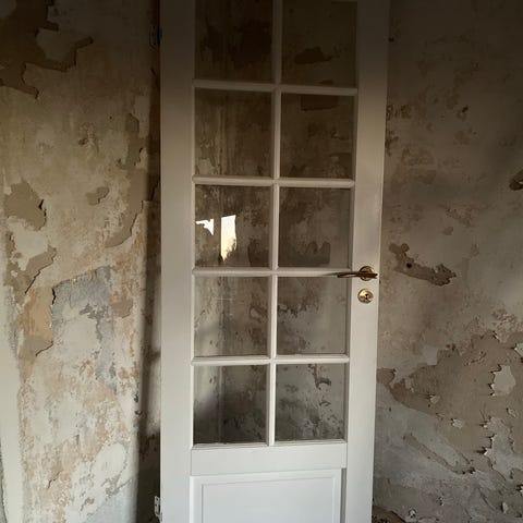 Hvid indvendig dør med glasfelter og massiv hvid indvendig dør