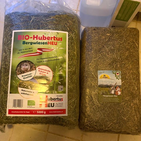 Det er topkvalitets-hø til kaniner eller gnavere, høstet i naturbeskyttede områder og fyldt med forskellige græsser og urter.
